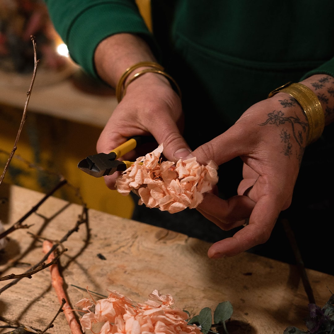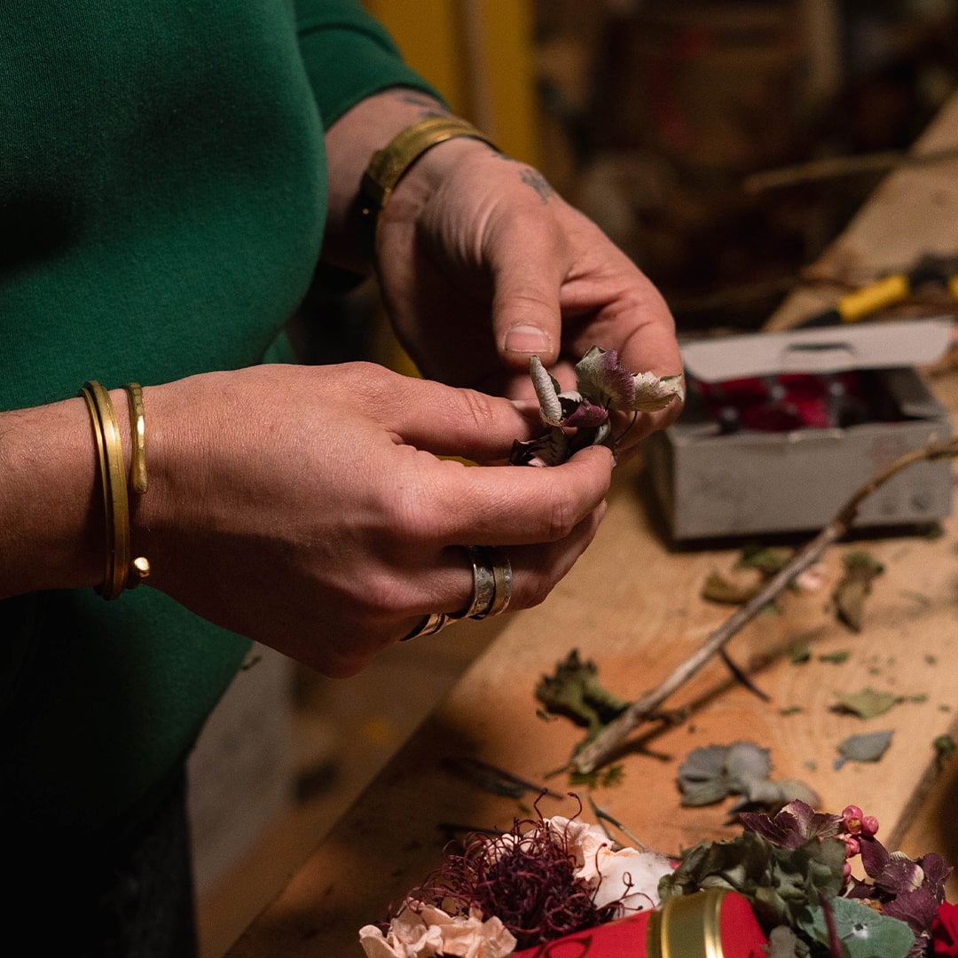 Henry, artisan fleuriste depuis 15 ans, compose avec instinct et sensibilité. À ses côtés, Loïc et l’équipe apportent leur énergie et leur touche personnelle.